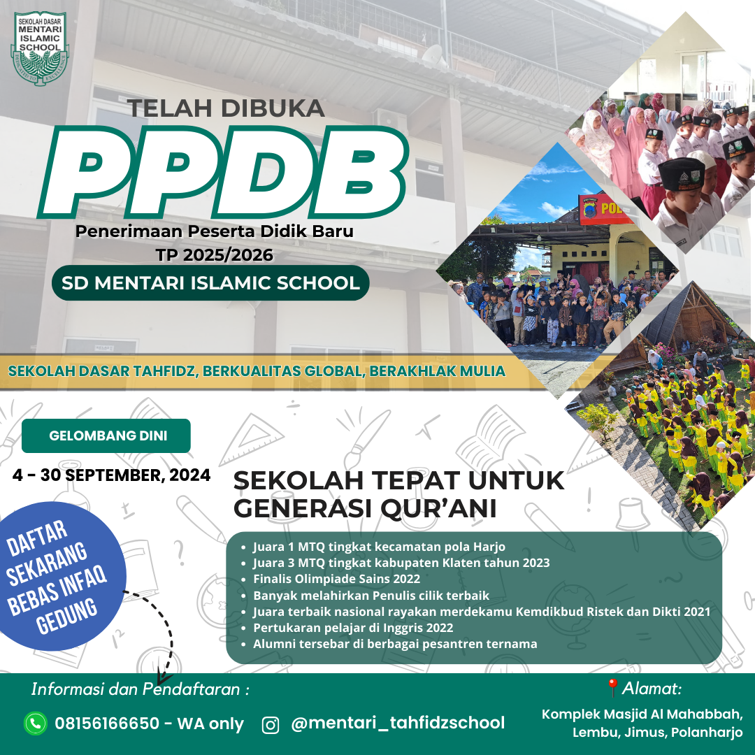 #PPDB2025 #SekolahIslamTerbaik #MentariIslamicSchool #GenerasiQurani #SekolahTahfidz #DaftarSekarang #SekolahBerkualitas